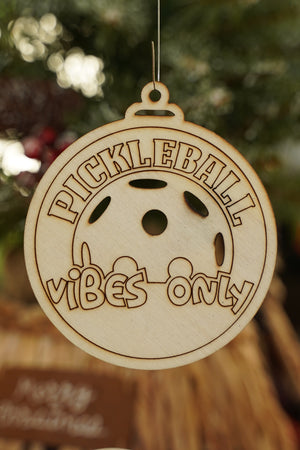 Pickleball Vibes Only - Outline - Custom Personalized Laser-Cut Wooden Pickleball Ornaments – 4 Inches in size